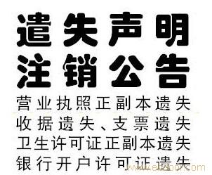 上海注销公告广告;遗失广告刊登;一般代表证遗失